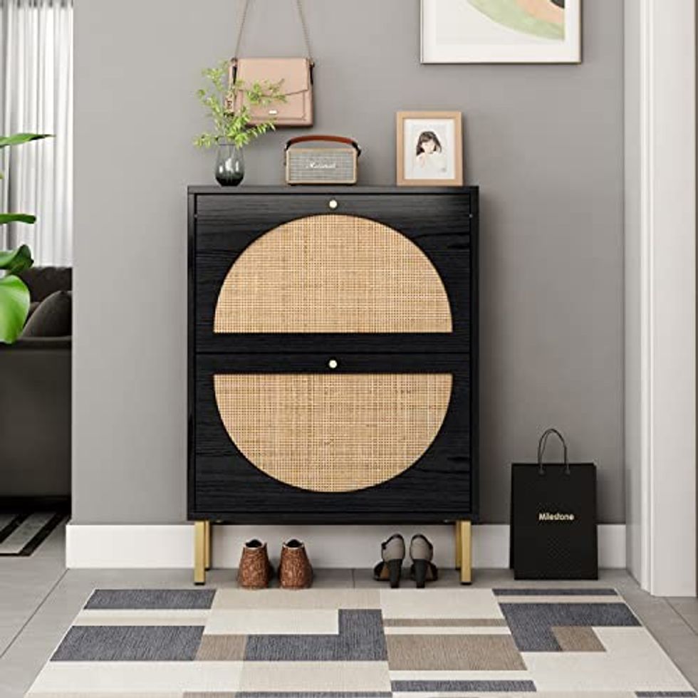 Say goodbye to shoe piles by the door with this rattan cabinet, with two flip drawers to neatly store each pair. The natural rattan design adds a boho-chic flair while staying on trend with modern elegance.