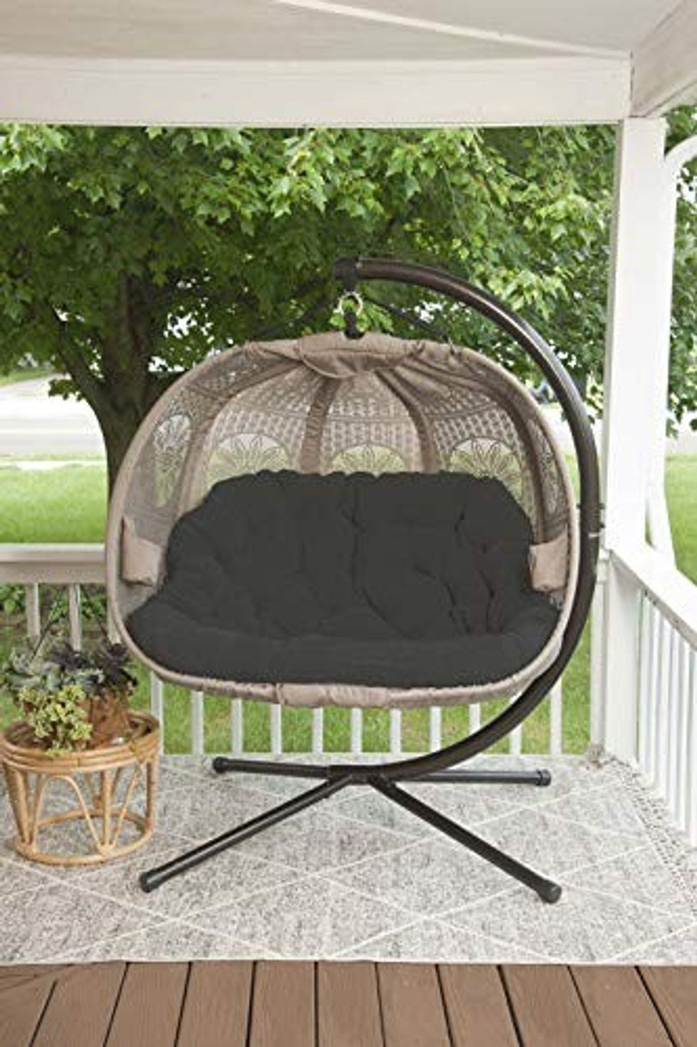 Because these hammock chairs don't need to be hung up on something sturdy, you can set up a cozy seat virtually anywhere you like. Their wide base keeps them steadier than most other stands on the market. Plus, there's built-in padding in the seat for added comfort without any bulky pillows.
