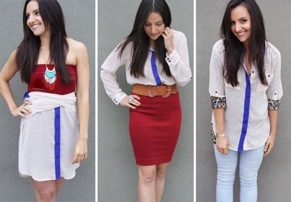 This one takes a little trickery. First, put on your skirt as a tube dress. Then button up your blouse until it fits snugly around your waist. Use the sleeves to create a belt that ties, tuck in any excess material, and you’re good to go! This look has festival-wear written all over it.
