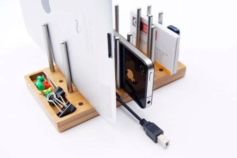 1. Modo: A modular system for all of your various electronics and desk essentials. We love this because you can move the pegs around in any configuration, making it easy to organize any size and combination of cards, tablets, phones, etc.
