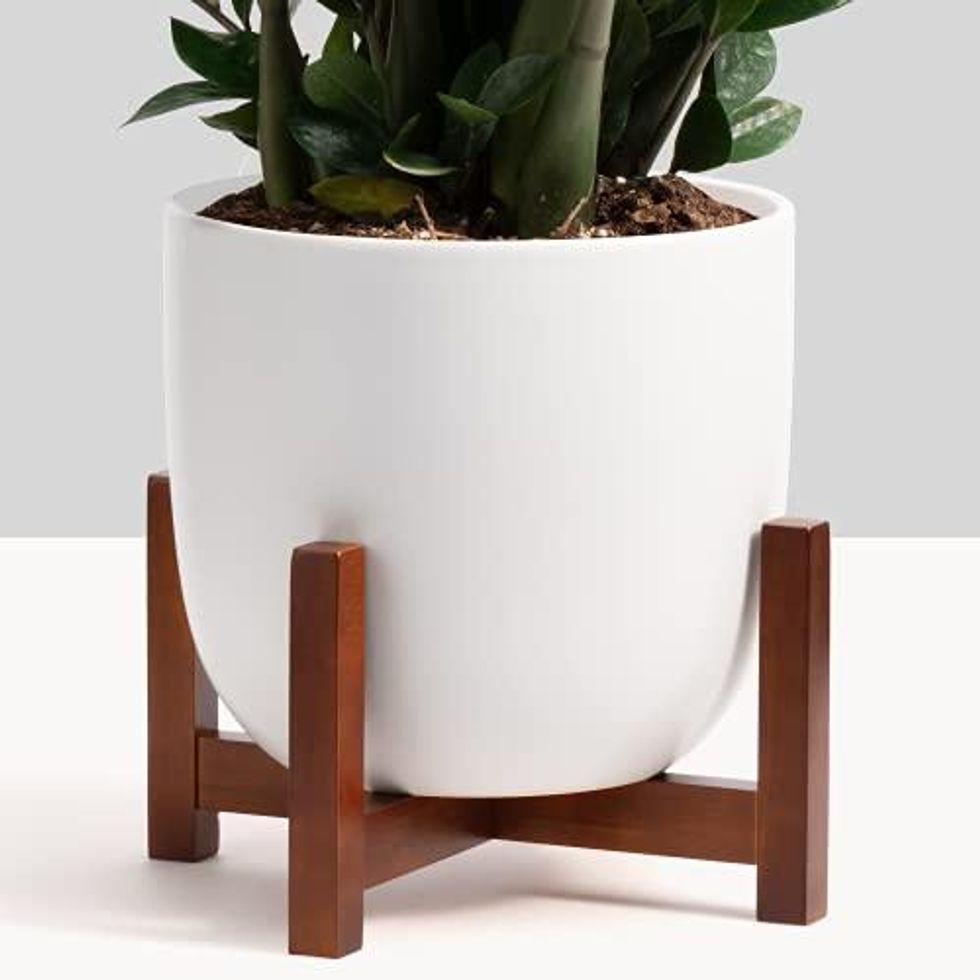 This hand-crafted ceramic planter will do for your interior space what the plants it holds will do for the air you breathe. Give it a boost! When you see this egg-shaped plaster planter resting on its adorable, wood stand, it might fuel your passion for finding attractive, indoor house plants to compliment your home and freshen the air you breathe. One reviewer raved, “This is the prettiest planter I have. I love it!”