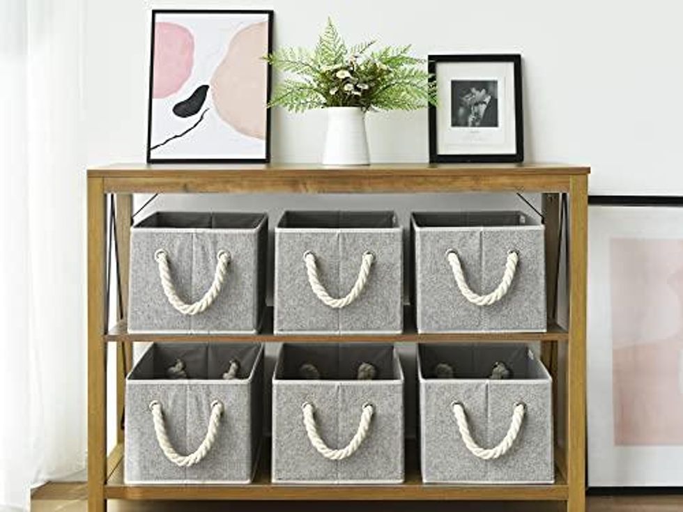 Storage Boxes are usually just a functional item, which is why these charming storage boxes stand out in a striking way. The soft rope handles make it easy to carry while adding the perfect touch to these functional bins. You can use them to store items in a linen closet, but their attractive design begs to be displayed. One reviewer agrees that the rope ties are “super cute” and recommends for “any livingroom aesthetic.”