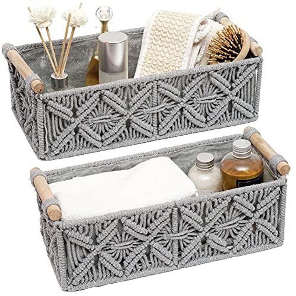 These hand-crafted,macrome baskets are a perfect finishing touch to the bathroom, guest room or even a side table in the hallway. It’s easy to see the intricate detail in the boho chic, cotton weave design, and the wood handles are a nice touch. Feel like you're in a hotel when you display your toiletries in this basket. One reviewer loved the “beautiful baskets”for organizing small things on a dresser.