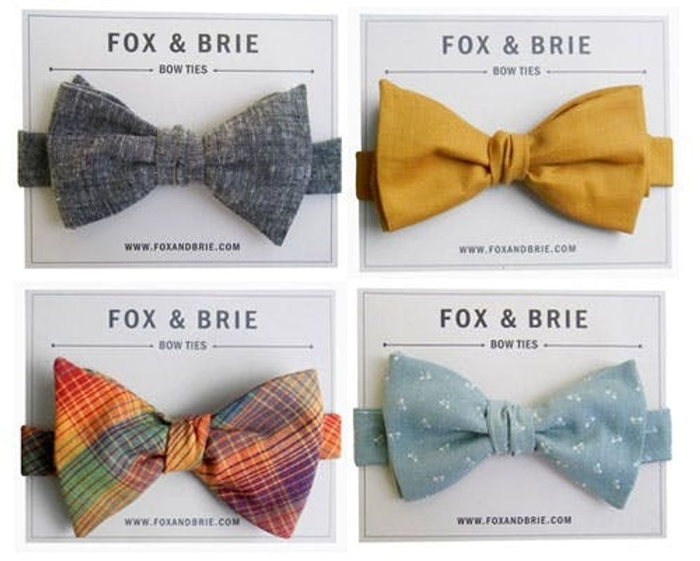 1. Fox & Brie: We’ll start with the most traditional. These handcrafted bow ties are charming and on the slightly rustic side. Great for an outdoor event, or for a city night that could use a little country, many of these have complementary ties and ascots if you want to get matchy matchy with friends. Oh, and we think Fantastic Mr. Fox would definitely shop here. The standard bow ties are $32, while ascots and ties vary.