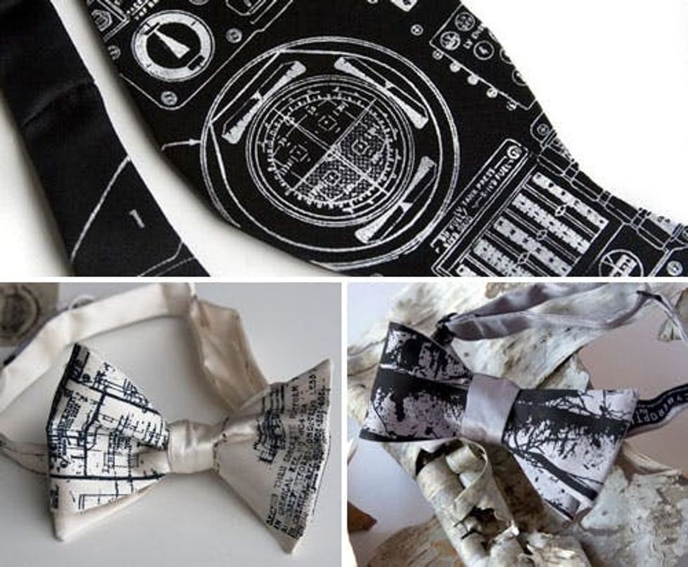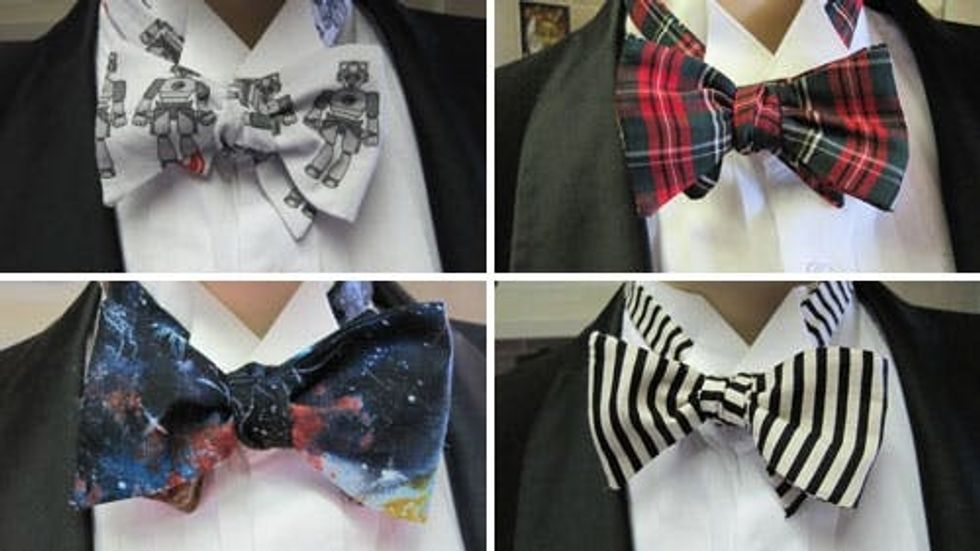3. Cloutseu: Often referred to as Papillon (French for butterfly), floppy ties are experiencing a serious comeback thanks to shows like Mad Men and Pan Am. This shop combines fun, novelty fabrics with playful and classic bow tie styles. Nerds that we are, we totally love the robot bow tie. And some of them are even reversible! Most of their bow ties run at $20 a pop.