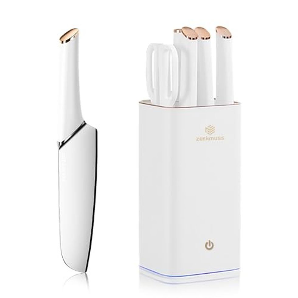 Influencers like to chop in style, and this upscale set of knives, complete with a block and built-in sharpener, is the pinnacle of fashionable cooking. The block also features a water and rust-proof cleaning and drying system for sanitized, squeaky-clean knives.