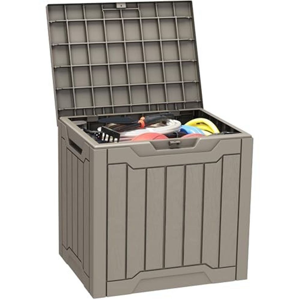 An outdoor storage deck box isn’t necessarily going to add to the beauty of your outdoor area. However, it does enable you to store all kinds of tools and items. From sports equipment to throw pillows to gardening implements, you can stuff this box full of clutter to present an organized appearance in your yard or patio.