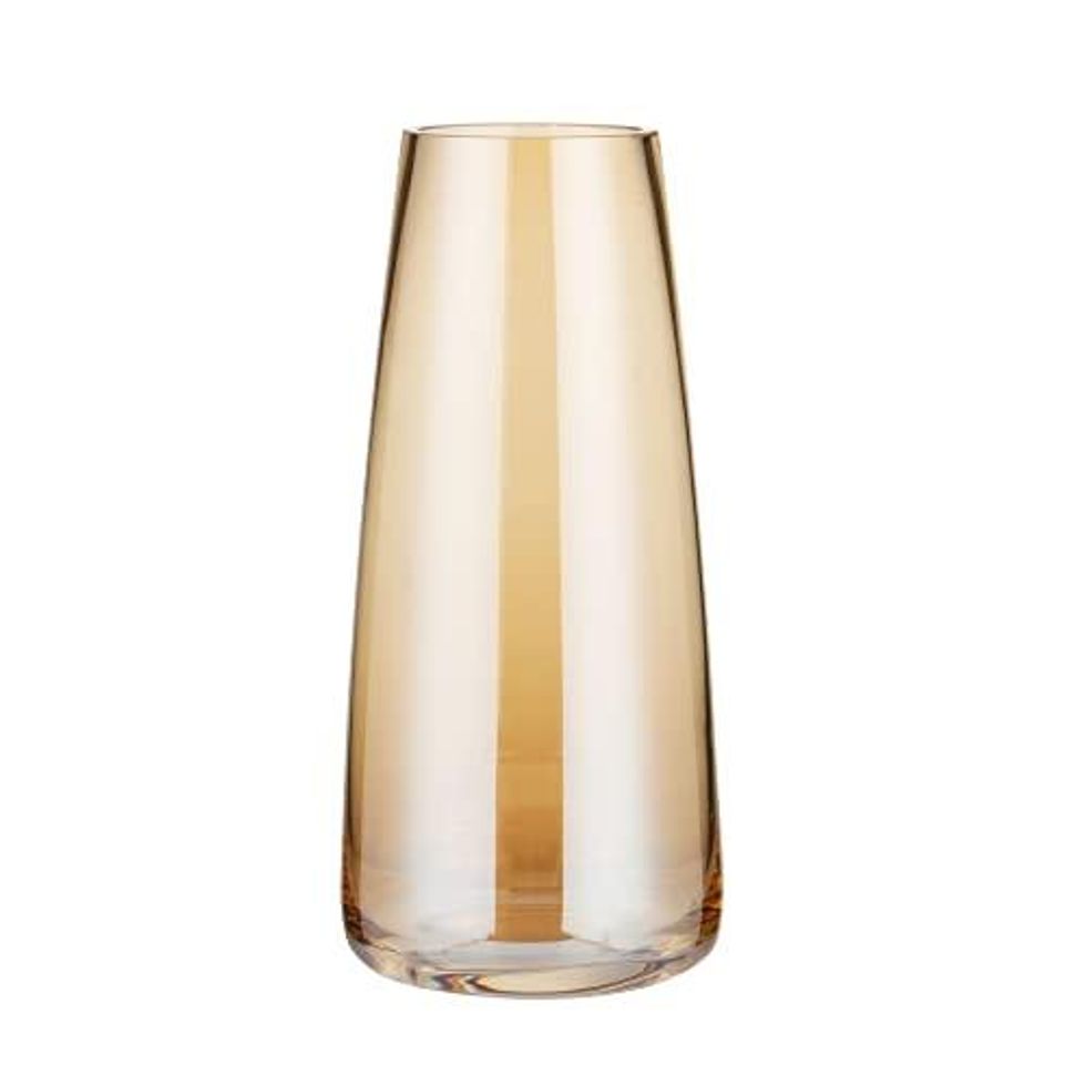 This sunkey Amber Glass Tall Flower Vase has a beautiful amber hue and makes a modern centerpiece for your Fall decorations. We love it because it's tall, and the clear glass makes it work well with dried pampas or eucalyptus.