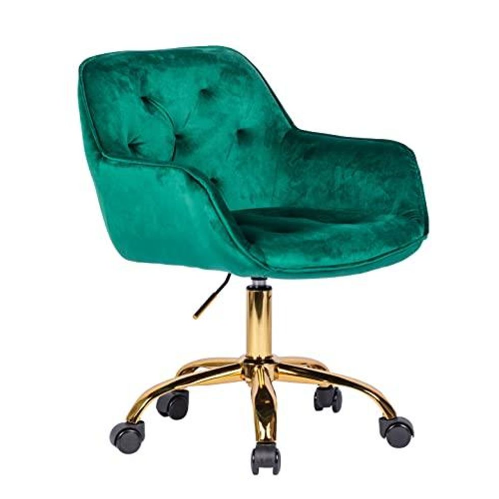 If you're going to be sitting at a desk all day, you might as well do it in style. The ATTICA Task Chair velvet chair in this stunning emerald green color is perfectly complimented by a gold metal base. With an adjustable seat and wheels, you can swivel and scooch around to your heart's desire.