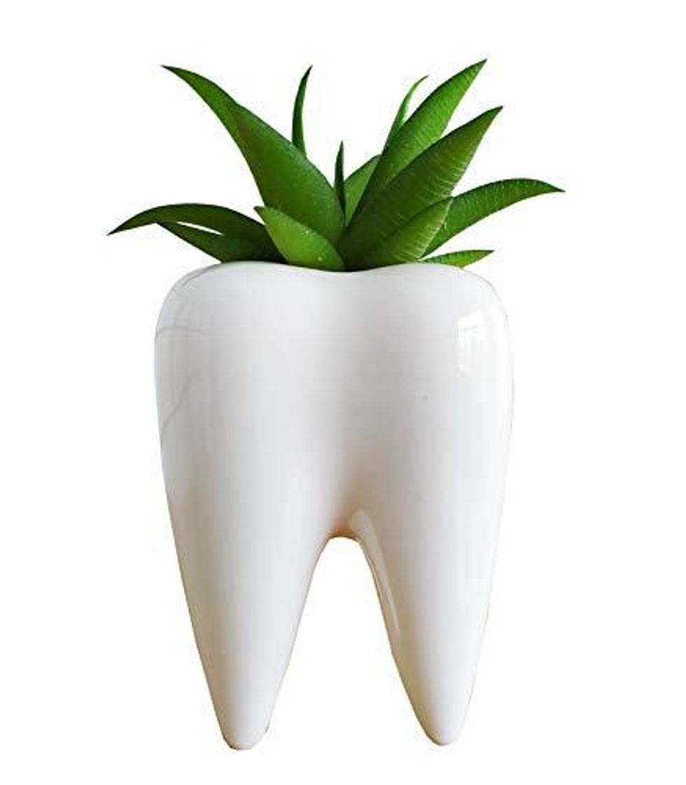 If you're a dentist (or enjoy quirky home decor), this tooth-shaped planter or pencil holder is something you can't miss. It's the perfect size to hold your plant or pens, and it scores a bunch of points for originality.