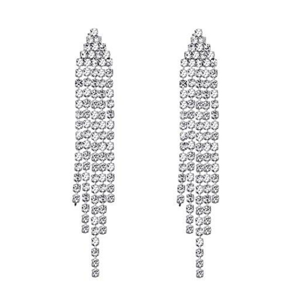 Turn heads in every direction this holiday season in these silver crystal tassel earrings that will have you looking like the life of the party. These earrings are the perfect touch to any New Year's Eve outfit and will have you shinning in seconds. These lightweight, comfortbale earrings don't have to just be saved for the holiday season! They are perfect for weddings, birthdays and dinners too!