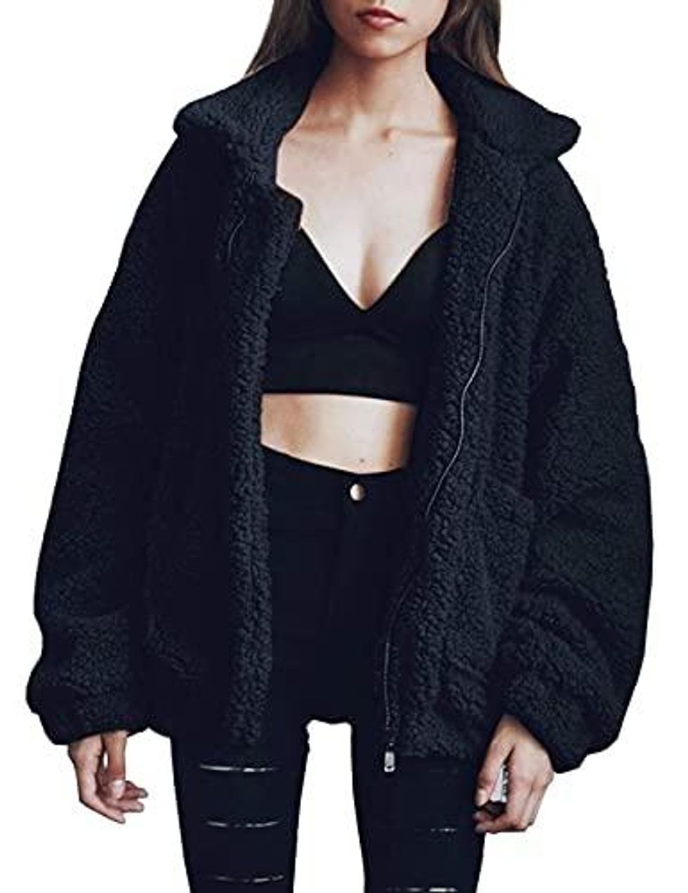 Did someone say oversized jacket? You can't ever go wrong with a large, comfortable and soft faux coat... Especially not this shaggy coat that comes in over thirty five colors on Amazon. This is my favorite go-to jacket of the winter and can easily be dressed up or dressed down depening on the event or occasion. I got my coat in black so that it matches everything! I'm obessed!