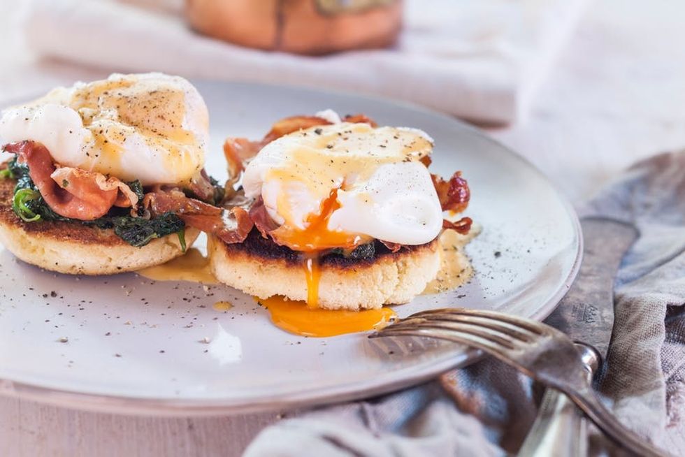 “Poach eggs ahead of time (this can be done the night before). Once they are finished, drop them immediately into an ice bath. This will stop the cooking process. Hold them in this water until you are ready to use them. Once you’re ready to top your eggs Benedict, just pop the eggs in a pot of simmering water and warm them back up gently. It’s as easy as that!” — Chef Alex Baker of Yves