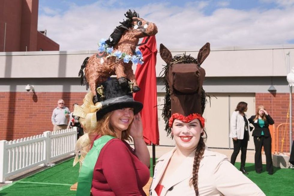 6. A Head for Horses: Also entered in the contest were these two festive ladies, who paid homage to the races by wearing the majestic beast atop their lovely crowns. (Photo via Dave Kotinsky/Getty)
