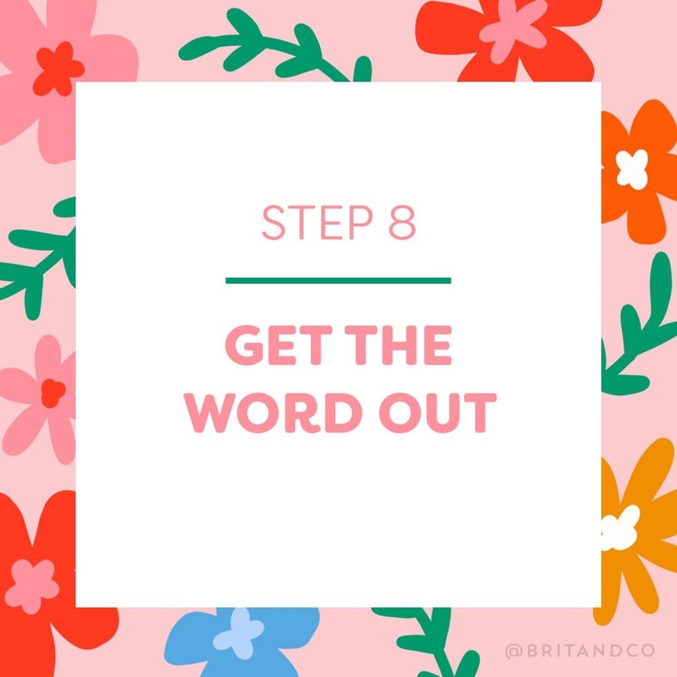 8. Promote your business. In addition to social media and SEO optimization (learn more about SEO here!), contact other organizations, businesses, or events to see if you can collaborate with them to promote your brand. Set up a stand at your local farmers’ market, a craft fair, or a trade show to sell and to network with other small business owners. Getting involved in the small business community will only help!