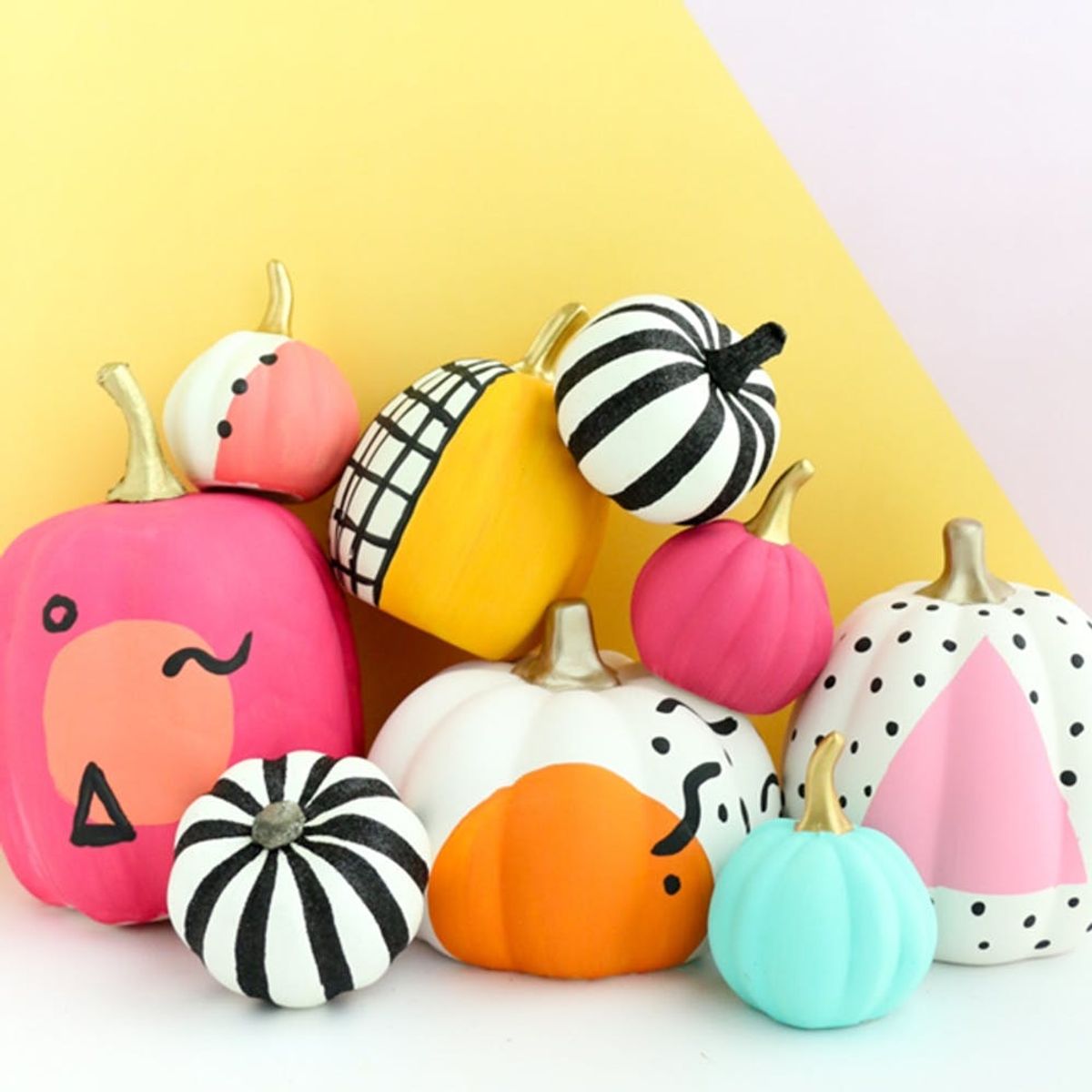 Neon party decor is a #throwback staple, so it’s only natural that you paint all your pumpkins to match. (via