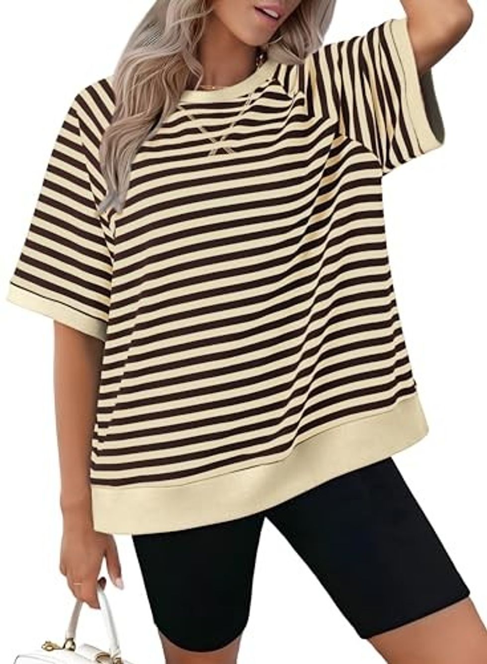 Say hello to your new summer staple—the Women's Striped Oversized Crewneck Tee. This color-blocked beauty combines classic stripes with a modern, relaxed fit, making it the perfect blend of timeless and trendy. Its lightweight fabric ensures you stay cool during those sunny days, while the versatile design means you can pair it with anything from denim shorts to chic skirts. Whether you're heading to a brunch date or a beach outing, this tee has got you covered.