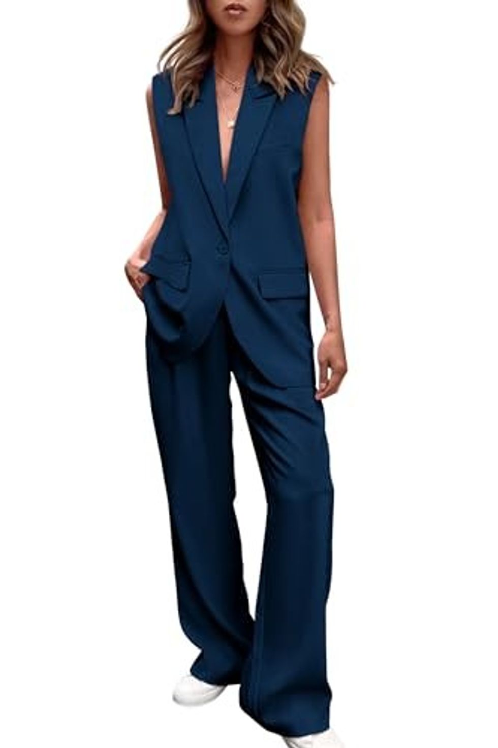 If you like to wear styles that are effortlessly cool and chic, this suit set is for you. The oversized vest and baggier pants are sure to make a statement this Valentine's Day.