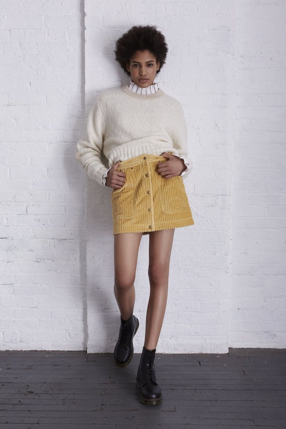 2. Land of Distraction: Calling all thrill seekers, rule breakers, and wandering souls! Allow Land of Distraction to be your ticket to the wild, wild west. The contemporary label’s fall collection boasts a rich autumnal palette (ALL the goldenrod and rust hues, please) and enough crushed velvet and throwback corduroy to unleash your inner ’70s babe. Rev up the rebellious spirit with Land of Distraction’s Sam A-Line Mini Skirt ($325) — a worthy companion to the season’s beloved combat boot.