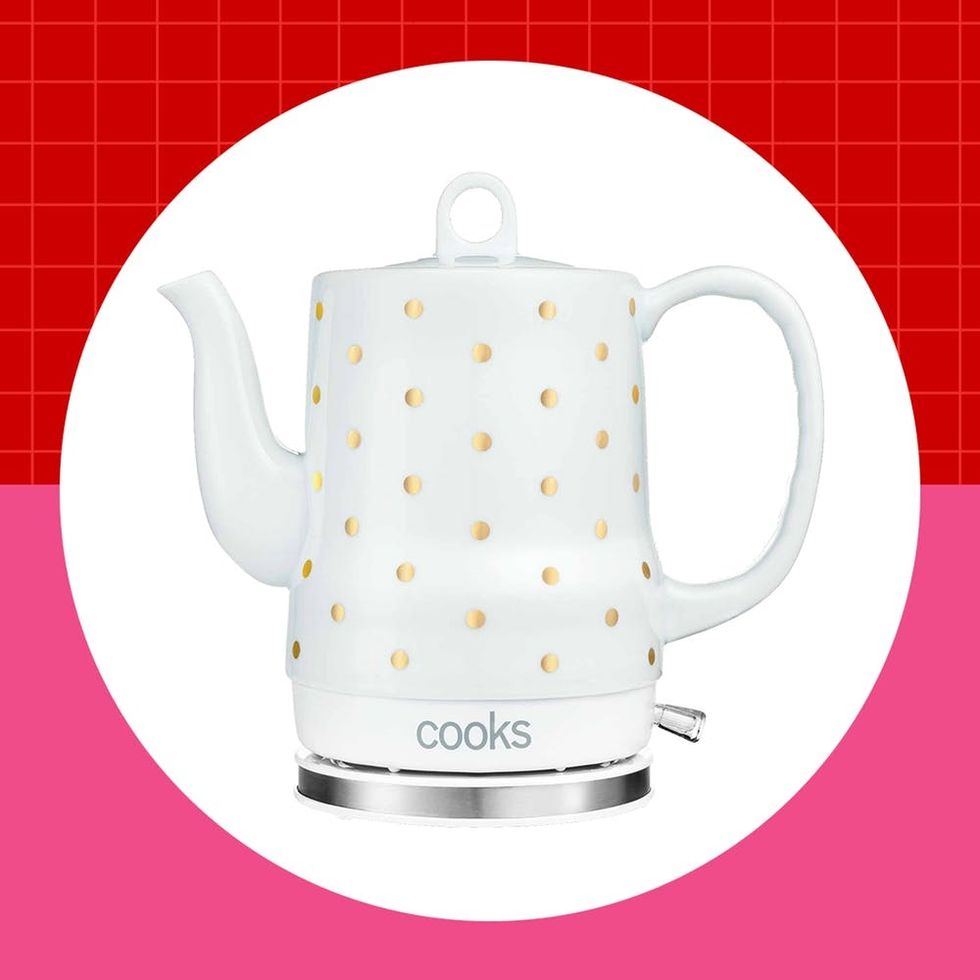 2. Cooks Ceramic Kettle: Three cheers for kitchen products with personality! This delightful electric kettle — exclusively at JCPenney — would look mighty fine on your pal’s kitchen counter. (Picture it next to a stack of vintage teacups on an open shelving unit… W.O.W.) Bonus points for its plastic-free ceramic base, quick heating function, and adorable gold polka dots.