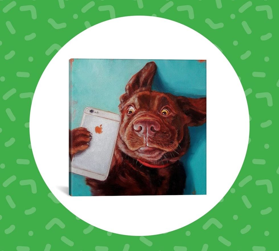 6. Dog Selfie by Lucia Heffernan Canvas Print: Okay, we’re not saying this is the perfect gift for just any friend, but this gem will surely put a smile on a special someone’s face. I mean, it combines two of every millennial’s favorite things — endlessly scrolling on our phones while horizontal, and big fluffy puppies. What’s not to like?