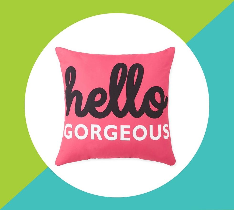 7. Home Expressions™ Hello Gorgeous Decorative Pillow: Don’t you love how compliments come in all shapes and sizes these days? Sometimes you gotta say it with a comfy, hot pink pillow.