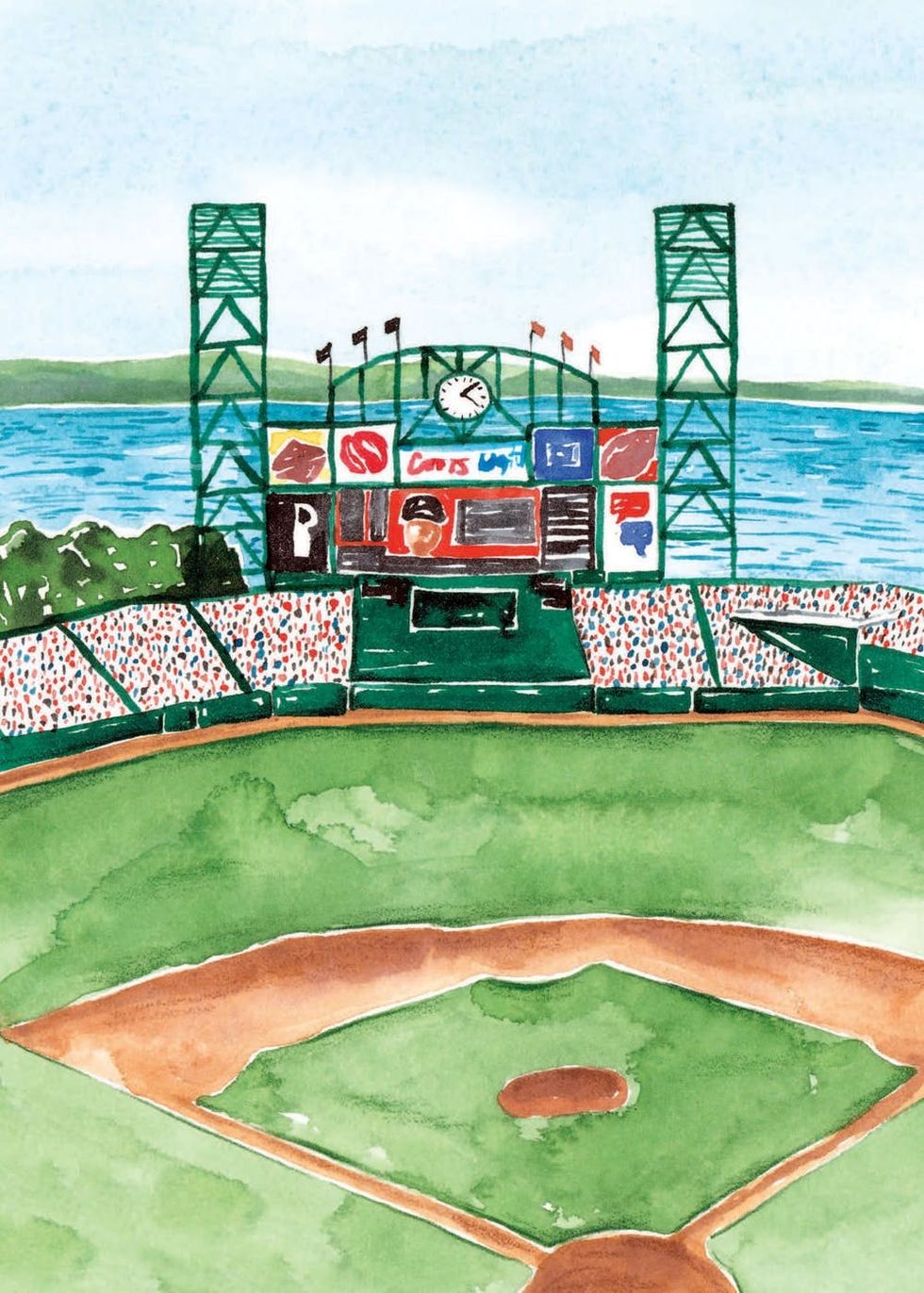 SRK: A big part of the audience for this book is visitors, so we did have to focus on the parts of the city that visitors would love and recognize, so, Fisherman’s Wharf, North Beach, Chinatown, [and] the Mission all got representation. I’m pleased that we got Ballpark Garlic Fries in there, too! The beautiful illustrations by Courtney Jentzen do a great job in bringing the city to life, from places that everyone knows like the Golden Gate Bridge to local treasures like the tiled steps of 16th Avenue.