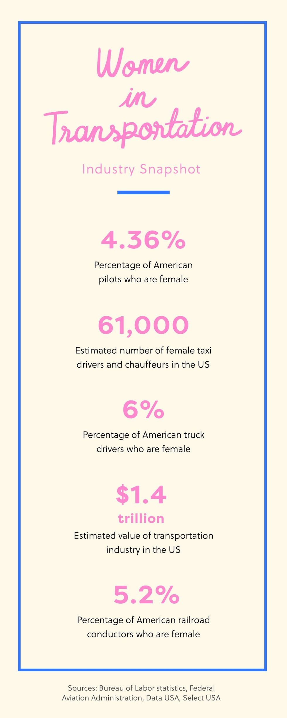 Hooks has chosen a famously male-dominated sector of the transportation industry, but women working in everything from trains, to planes, to automobiles are the minority in their workplace. Even the taxi industry, which boasts one of the higher gender balances, is still only 16 percent women. For most of the ladies we spoke with, it’s an unwavering passion for their job that’s kept them motivated to get to where they are now.