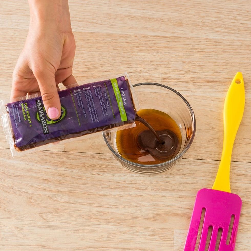 Mix one packet of thawed acai powder with three tablespoons of agave.