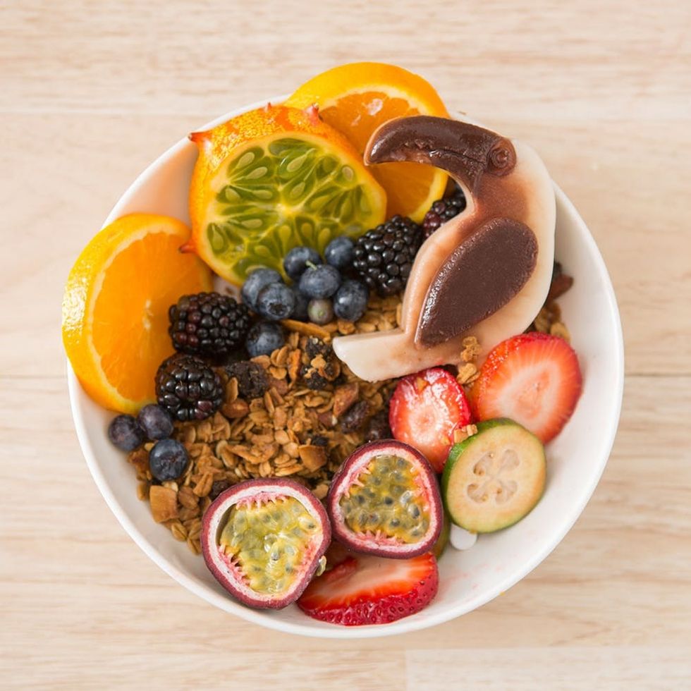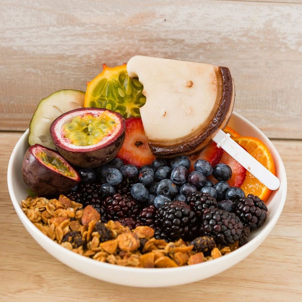 - Cut up all your favorite fruits and add into a bowl with granola. Top it off with an acai popsicle — enjoy!