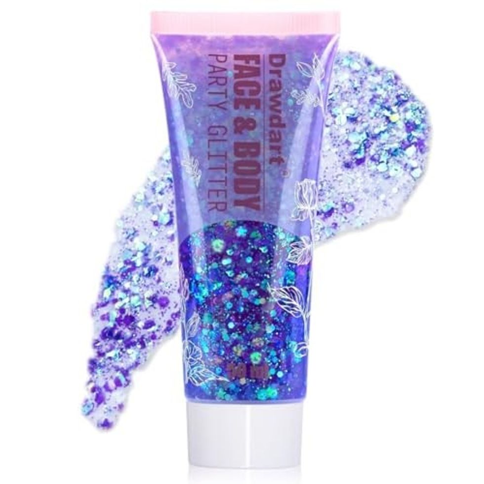 Nothing says sea queen quite like the Drawdart purple glitter gel. Packed with chunky iridescent sequins in shades of violet and turquoise, this face and body gel gives you that glimmering-fins-at-sunset vibe. Dab it across your collarbones or cheekbones and watch the sparkle ripple.