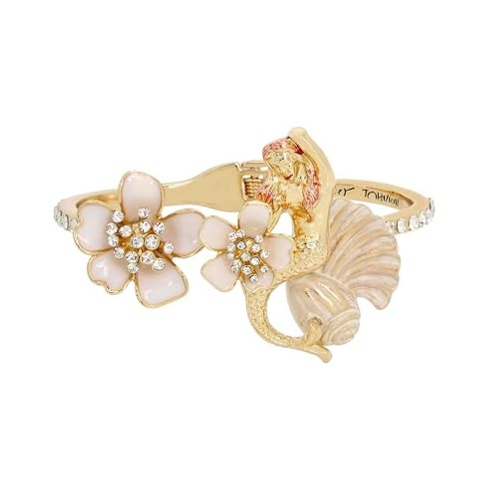 The Betsey Johnson mermaid shell bangle is joy in bracelet form. With bright enamel seashells, a dangling pearl, and that unmistakable Betsey whimsy, it’s playful, nostalgic, and impossibly cute.