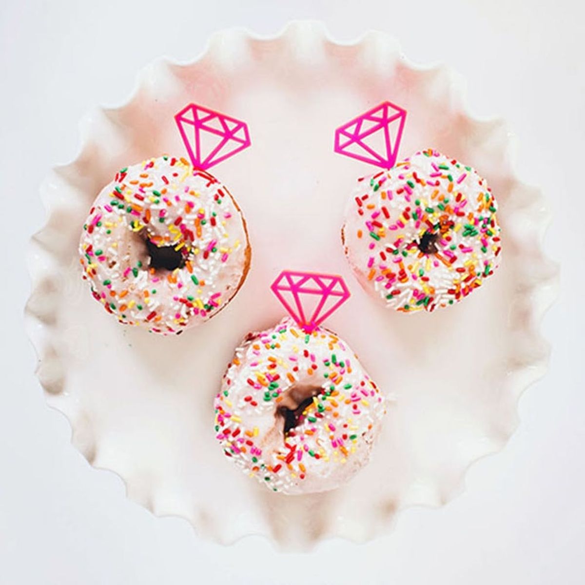 Grab a few dozen of your fave donuts and give them bridal status with diamond toppers. You and your girls won’t be able to resist the sugar-coated treats as you celebrate your last fling before the (donut) ring!