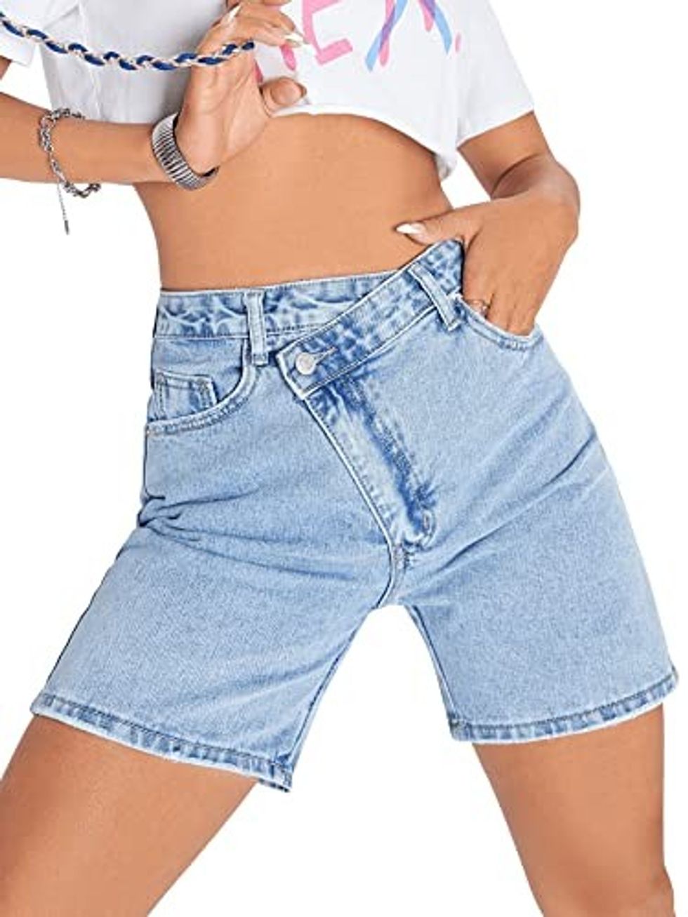 This is the classic denim short turned up a notch. The criss-cross front is something we are seeing all over the fashion blogs paired with anything from baggy graphic tees to sleek crop tops.
