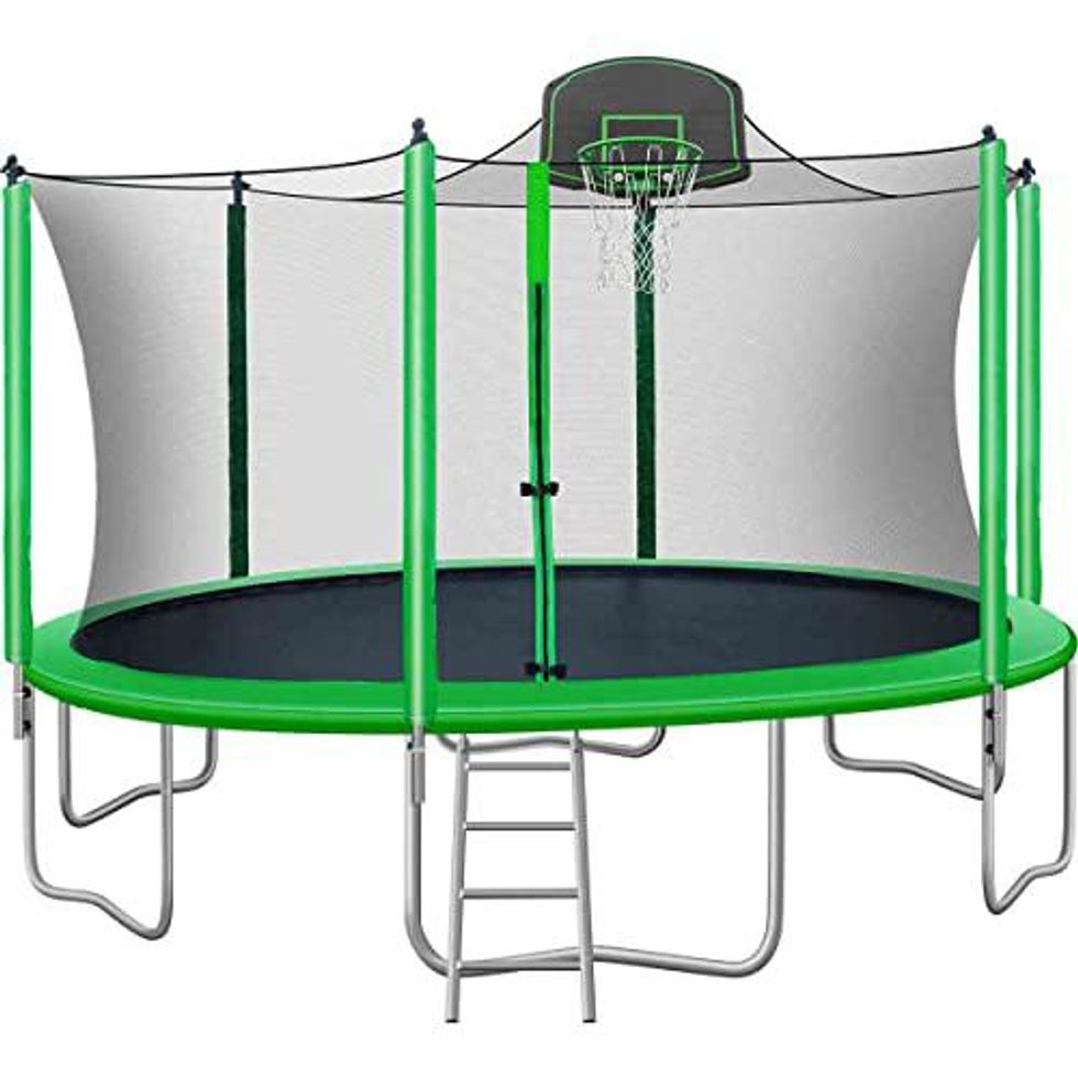 Kids go wild over this Giant Trampoline, which has a built-in basketball hoop. This 14-foot trampoline offers enough stability and support for four to six kids. Equipped with a full-size safety cover pad and high-quality elastic bands to ensure maximum safety.