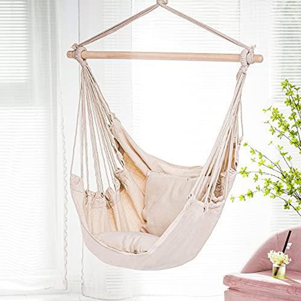 Kick your shoes off and drift into relaxation with the Hammock Chair. The cotton-polyester blended fabric is stain, tear, and weather resistant. It is perfect to place on your porch or lawn.