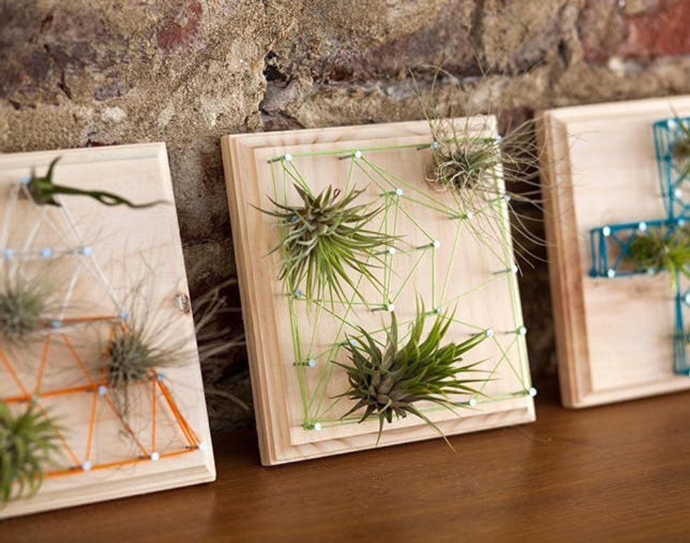 One of our all-time favorite DIY basics here at Brit + Co. was making string art signs. We decided it was time for a new take on the classic, and what better way to upgrade than by adding air plants? We love the way they look nestled into these designs.