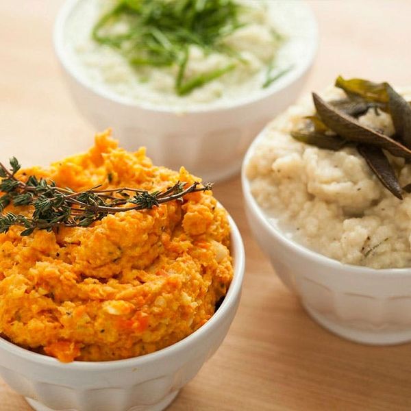 Who doesn’t love mashed potatoes? They’re creamy, buttery, and oh-so-delicious. They’re also usually loaded with milk, butter, and cheese. The result? One big calorie bomb. If you’re looking to lighten up this classic comfort food in time for Turkey Day, we’ve got you covered. Introducing three healthy alternatives to mashed potatoes: Celery Root & Sage Mash, Creamy Cauliflower Mash, and Parsnip & Carrot Mash. Each side can be prepared in a snap and will look beautiful on your table. Plus, you can help yourself to seconds (and thirds) without feeling guilty. Move over, mashed potatoes. There are a few new Thanksgiving sides in town!