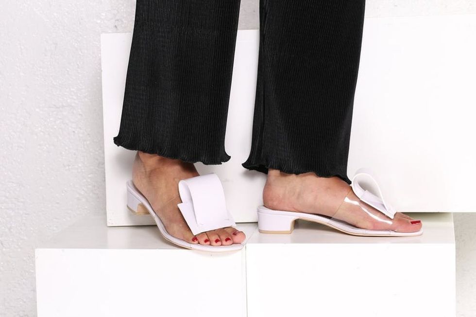 3. Intentionally Blank Nest White & Clear Sandals ($169): Jusssstt in case you were toying with the idea of rocking a bridal-themed bathing suit, Intentionally Blank’s see-through low-heeled sandals will fo’sure fit the bill.