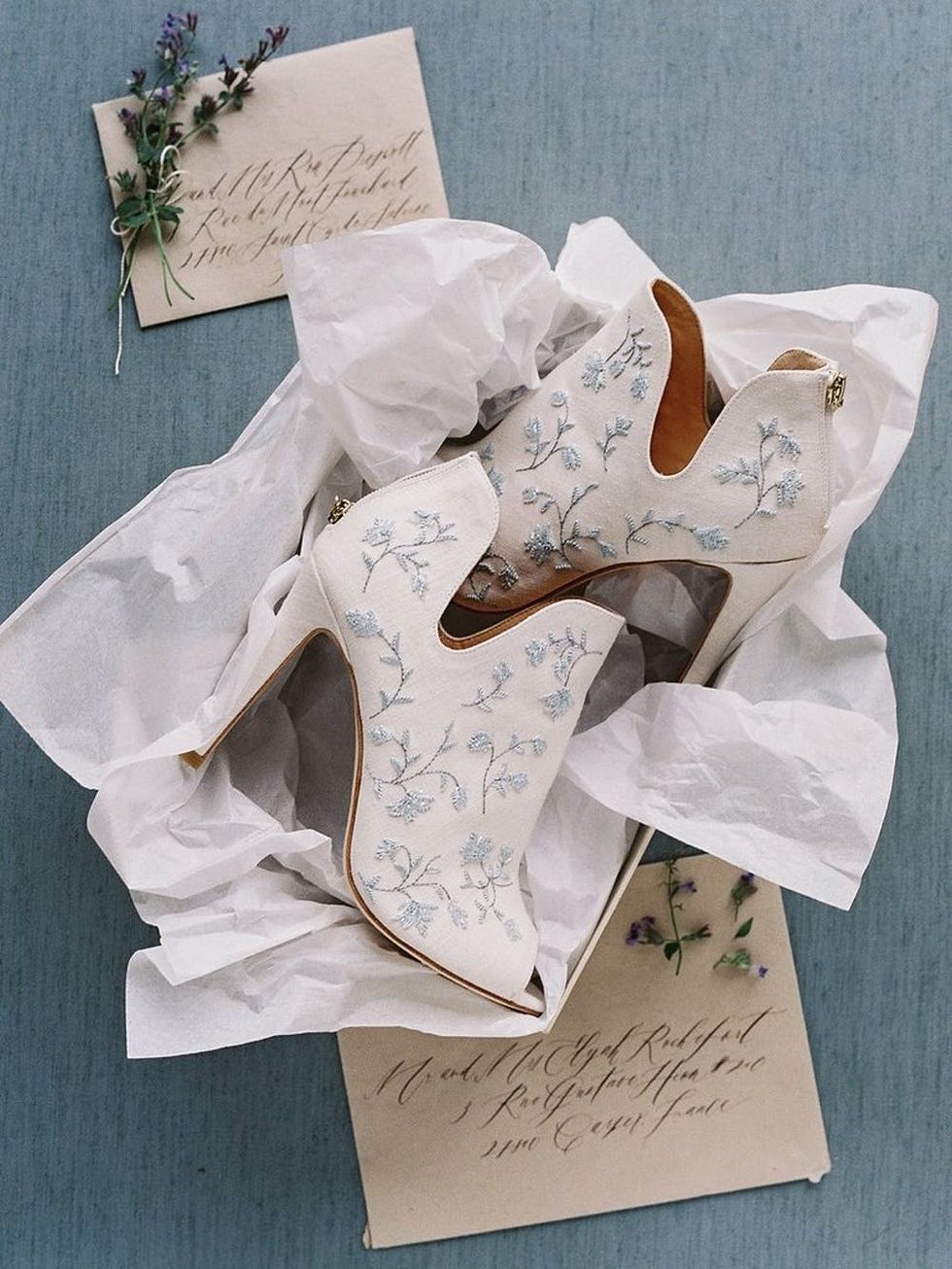 4. Peony by Joy Proctor French Blue Embroidered Wedding Booties ($405): You know what they say: If the bootie fits, wear it. Wedding bells will be ringing for the bride who manages to snag these elegant French blue floral embroidered babies.