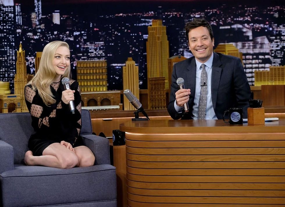 Seyfried took part in Fallon’s ongoing Google Translate Songs bit, where people, well, sing Google Translated versions of songs. The translation is not always perfect, of course, which means that a song like ABBA’s well-known “Dancing Queen” becomes “Hula Prince.” Definitely gives it a whole different vibe.