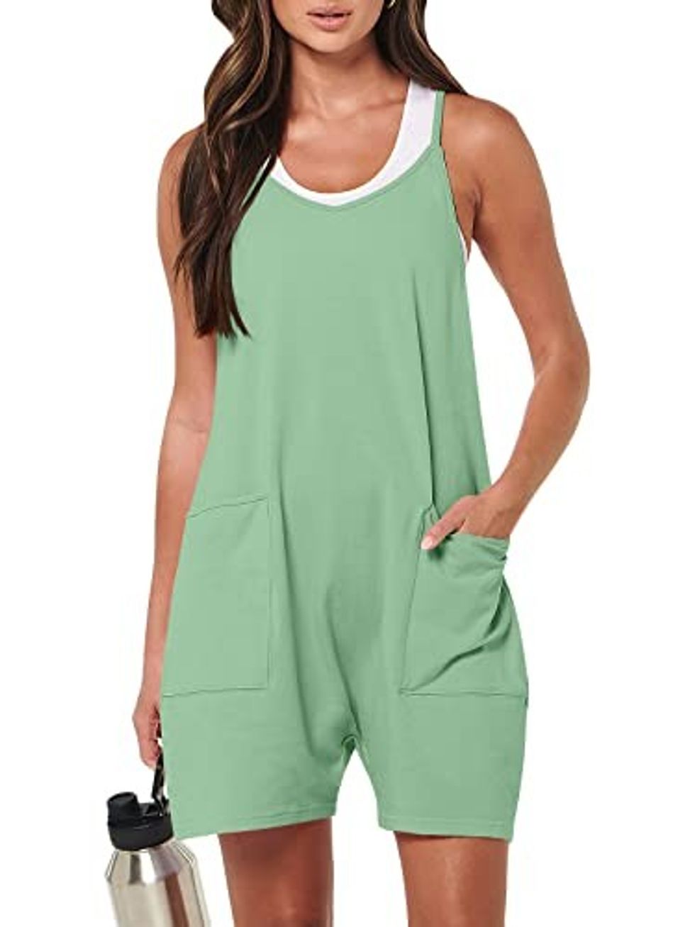 You'll want to spend all summer in Caracilia's Short Jumpsuit, so you might as well go ahead and order one in each color. The Pull-On Romper has adjustable spaghetti straps, a racerback, and pockets. Sizes range from Small to X-Large.