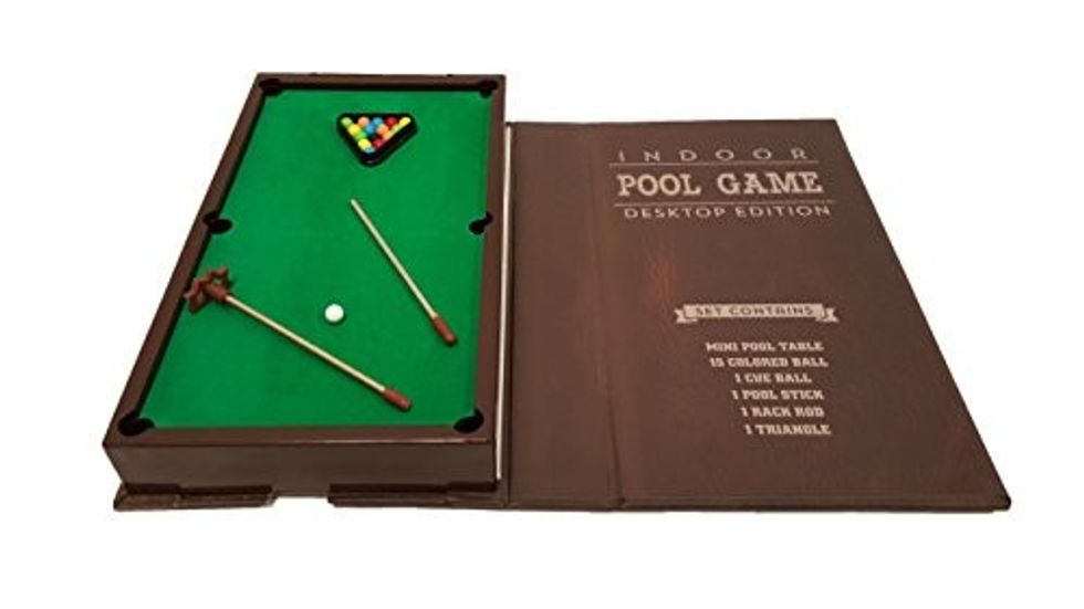 If you're ever experiencing brain fog during the work day, take a little gaming break with this mini desktop billiards board complete with two pool sticks, mini pool balls, and the triangle needed to set it all up.