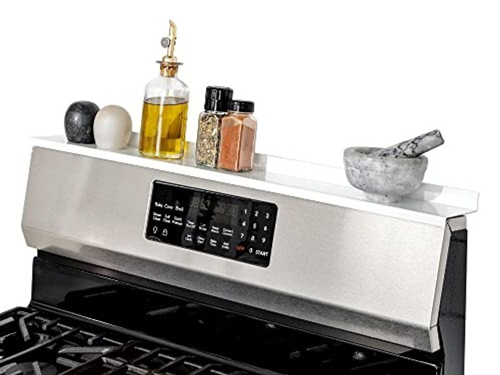 Cooking in a cramped kitchen can be a challenge, especially when you don't have enough space to store kitchen essentials like spices, oils, tools, and utensils. This StoveShelf magnetic shelf attaches directly above your stove for instant storage, and the universal design fits on a variety of stove configurations. Problem solved!