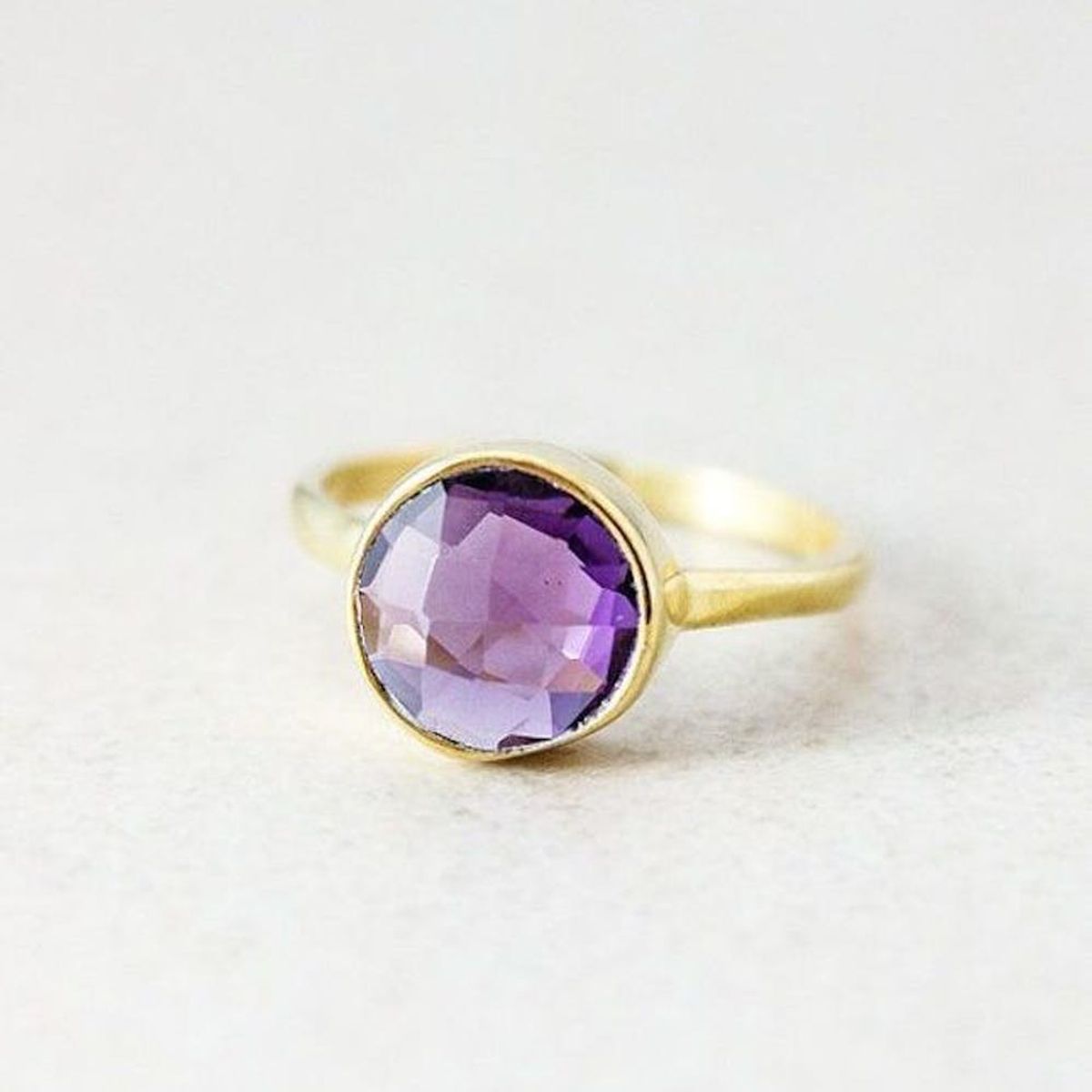 2. Round Purple Amethyst Ring ($62): Not only is this purple beauty set at an amazing price, but it features the most popular cut for gemstones. The round cut is thought to maximize light reflection, which means more *sparkle* for y-o-u.