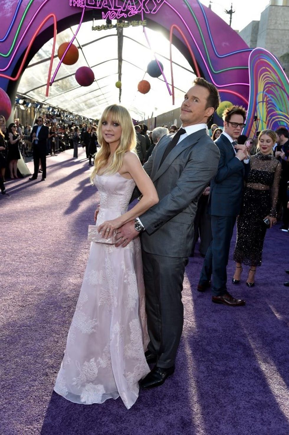 Stiff red carpet poses are so not for these two! For the Guardians of the Galaxy Vol. 2 premiere in LA on Wednesday, Chris Pratt and Anna Faris were predictably adorable on the carpet. In between glamour shots, the married couple posed for what can only be described as awkward prom pics (because, of course).