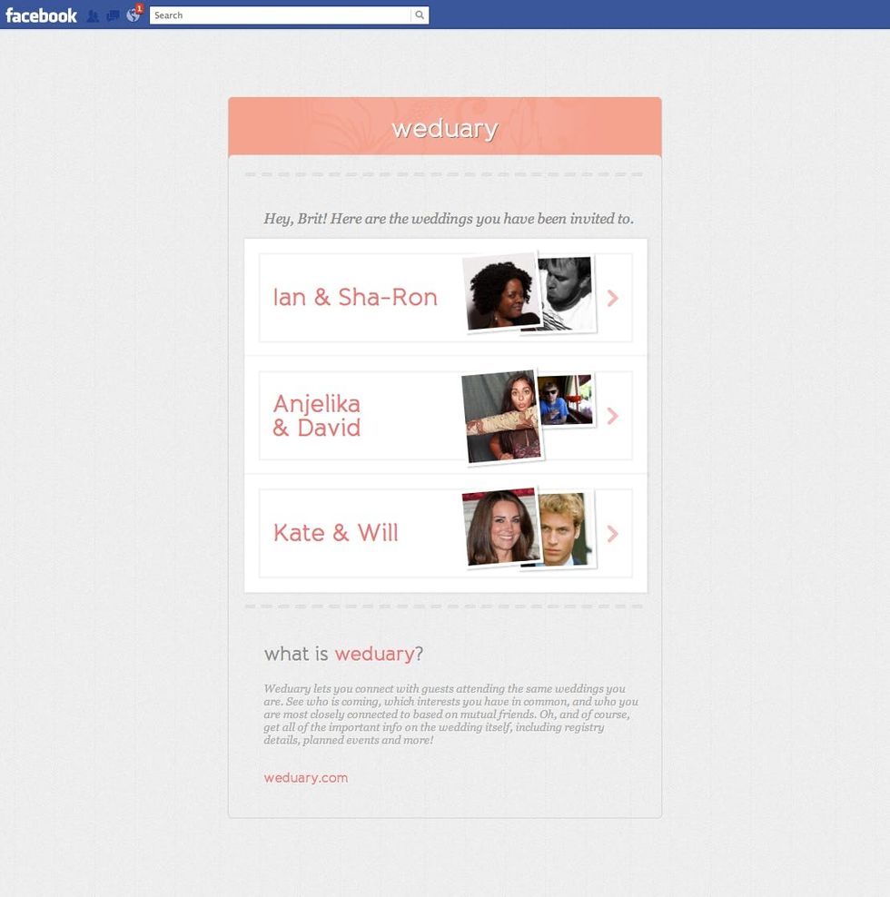 I started dreaming about what the ultimate wedding website would be: a visually beautiful, easy-to-navigate destination on the web that connected all of my guests with each other and with all of the info they actually cared about. Knowing all of the possibilities that the Facebook API has to offer, I knew it would be pretty simple to build the site of my dreams.