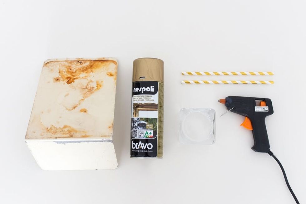 1. Spray paint the bookend, candle dish, and straws, and let them dry.