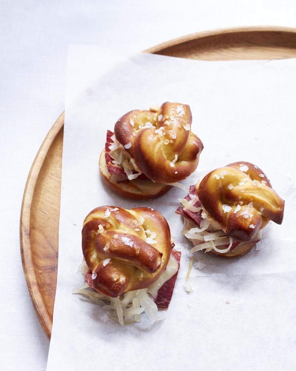 Mini Reuben Pretzel Sandwiches