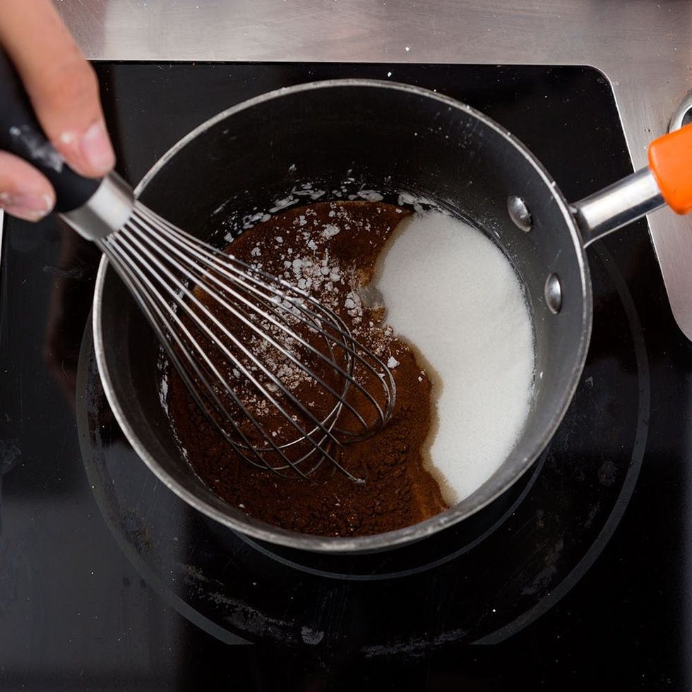 Mix the sugar, cornstarch, water, and cinnamon in a pot over medium heat. Bring to a boil.